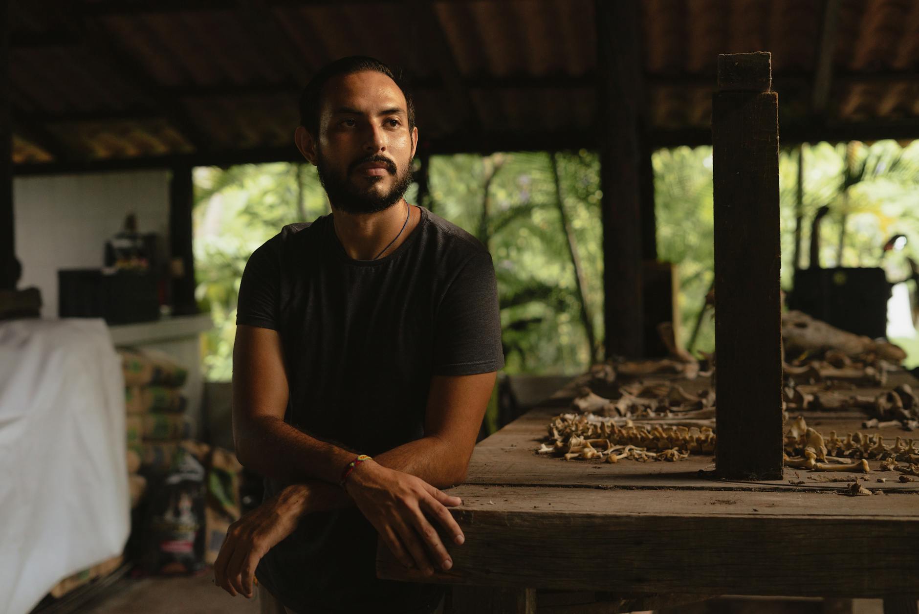 Paleontolog w Meksyku bada w pomieszczeniu szkielet gadziego przodka